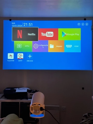 At home at the moment there is no where to put the TV in the living room for antenna issues suitable furniture etc and we decided to opt for this projector and it has been a total success. Fast delivery and magnificent quality. Unsurpassed price